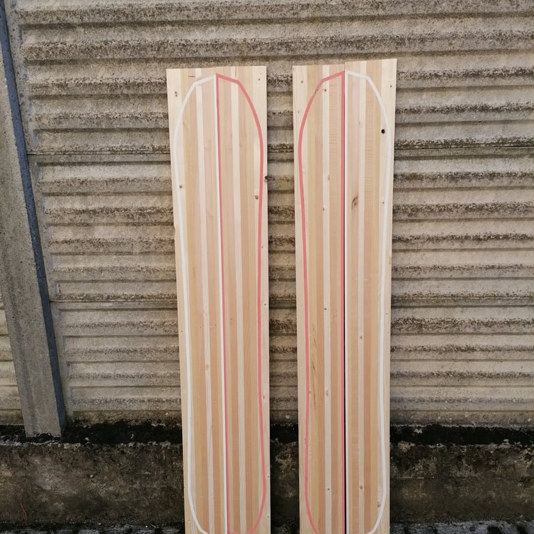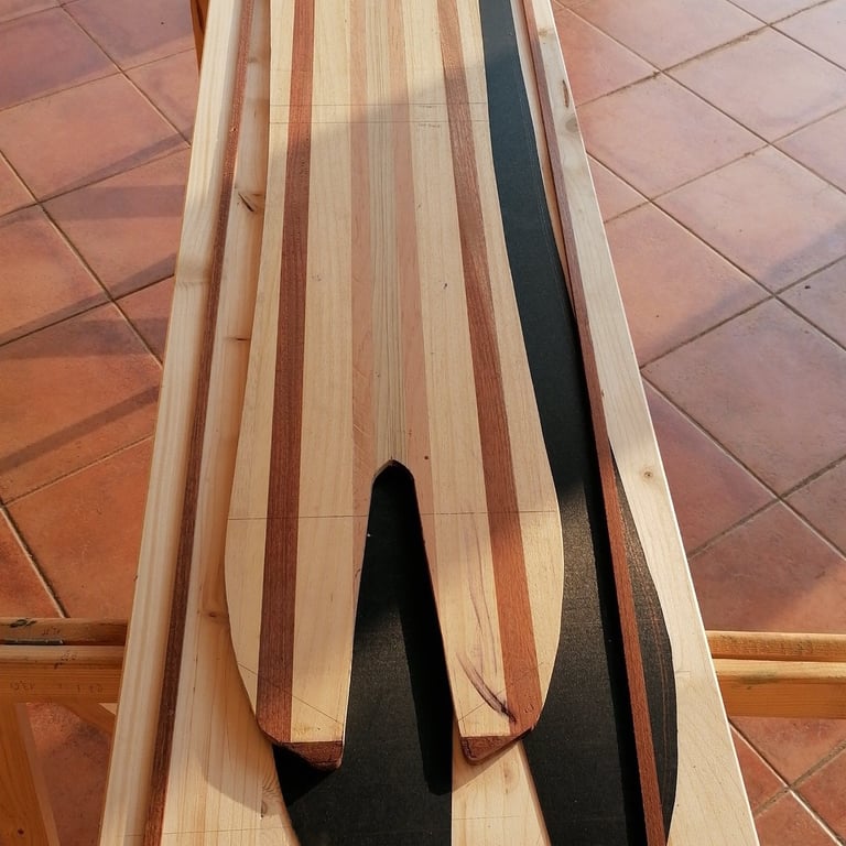Nello specifico, faggio e acero li ho utilizzati spesso come sede per gli inserti (boccole) e il mogano, per durezza e resistenza all'umidità, l ho utilizzato per tavole con sidewall completamente in legno (fianchetti). La paulownia, per flessibilità e leggerezza, l ho utilizzata prevalentemente per la costruzione di splitboard, mentre la combinazione di listelli di frassino e toulipier l'ho preferita per le mie tavole da carving/freeride.