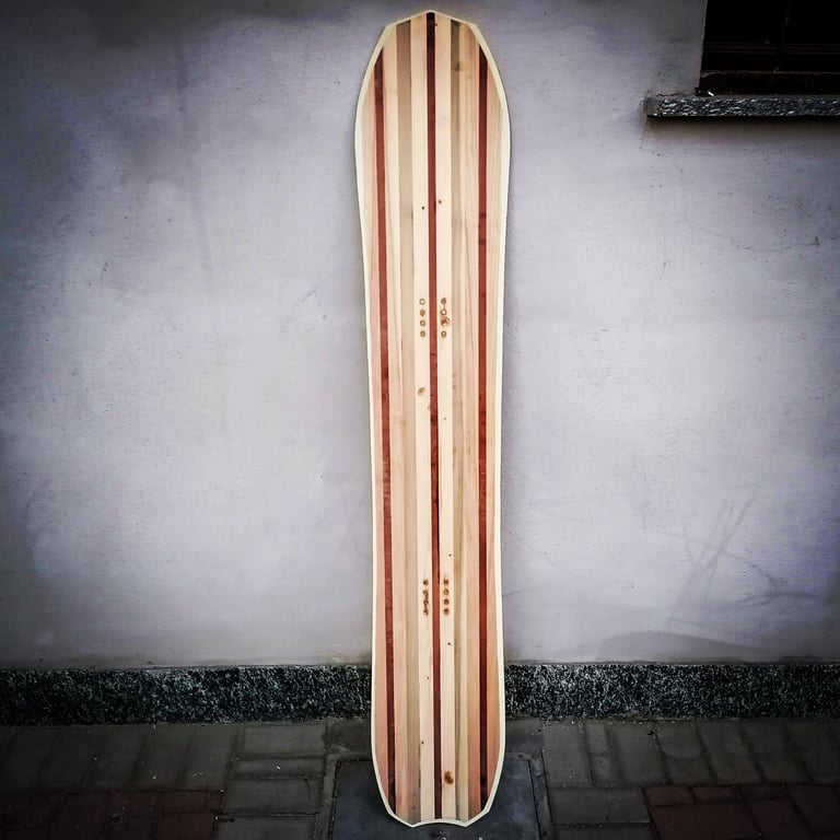 Quando parliamo di snowboard artigianali fatti a mano, parliamo di pezzi unici. Questa unicità deriva anche dalla possibilità di scegliere legni più pregiati di quelli utilizzati convenzionalmente dalle case produttrici e di combinarli insieme per ottenere un buon risultato prestazionale e qualitativo.